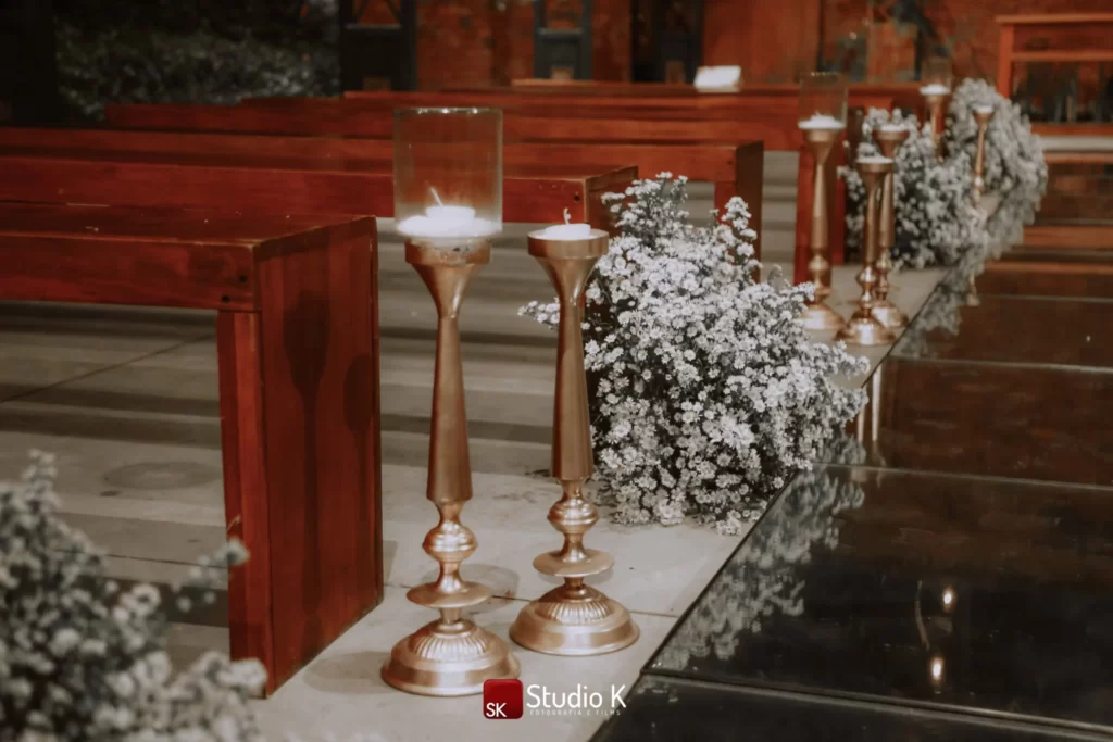 Faça da sua grande entrada ainda mais grandiosa com um lindo corredor brilhando com luzes das velas.
